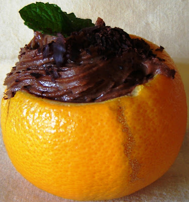 Mousse de chocolate em casca de laranja
